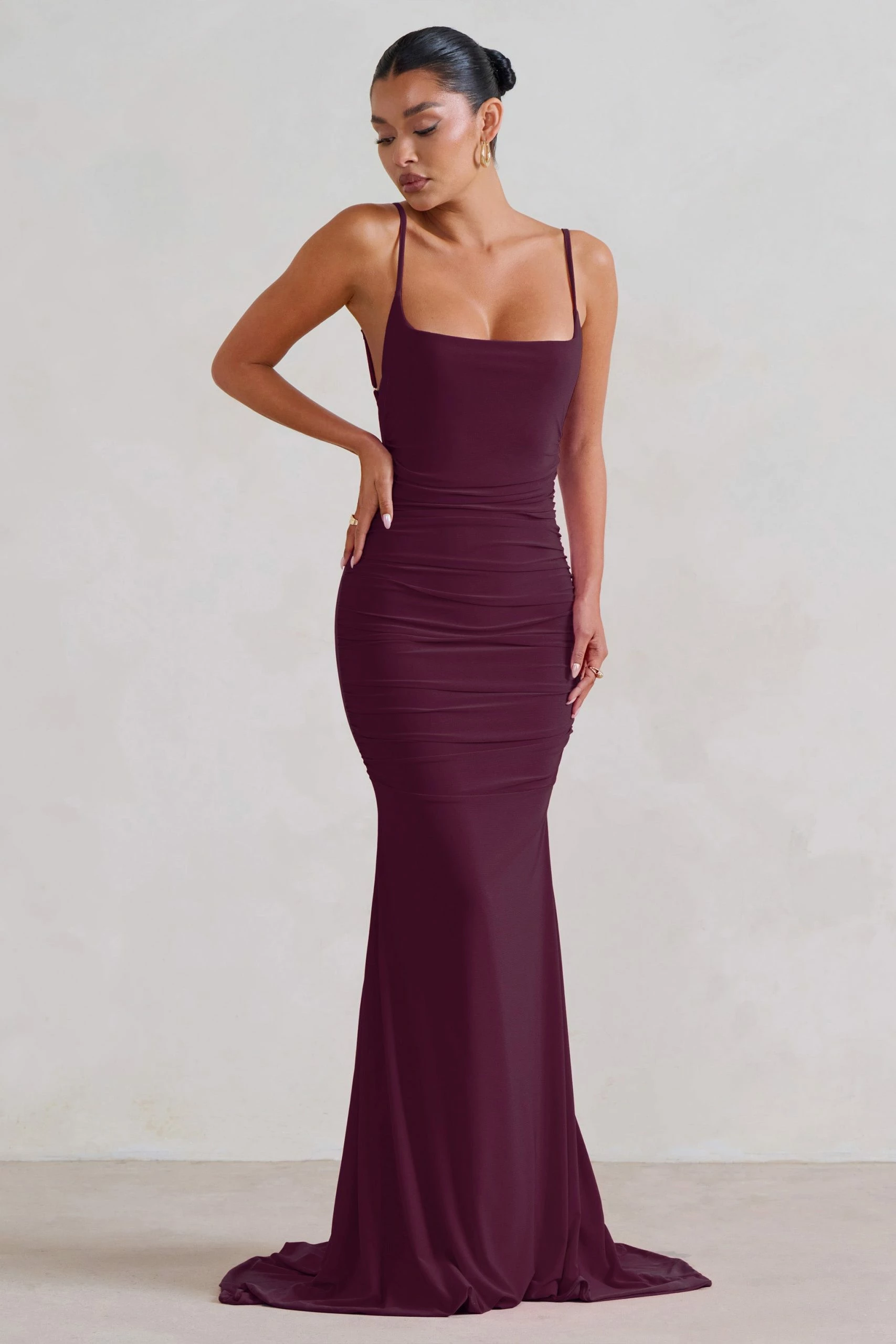 Be the first to review “Adele | Plum Backless Ruched Fishtail Cami Maxi Dress” Cancel reply