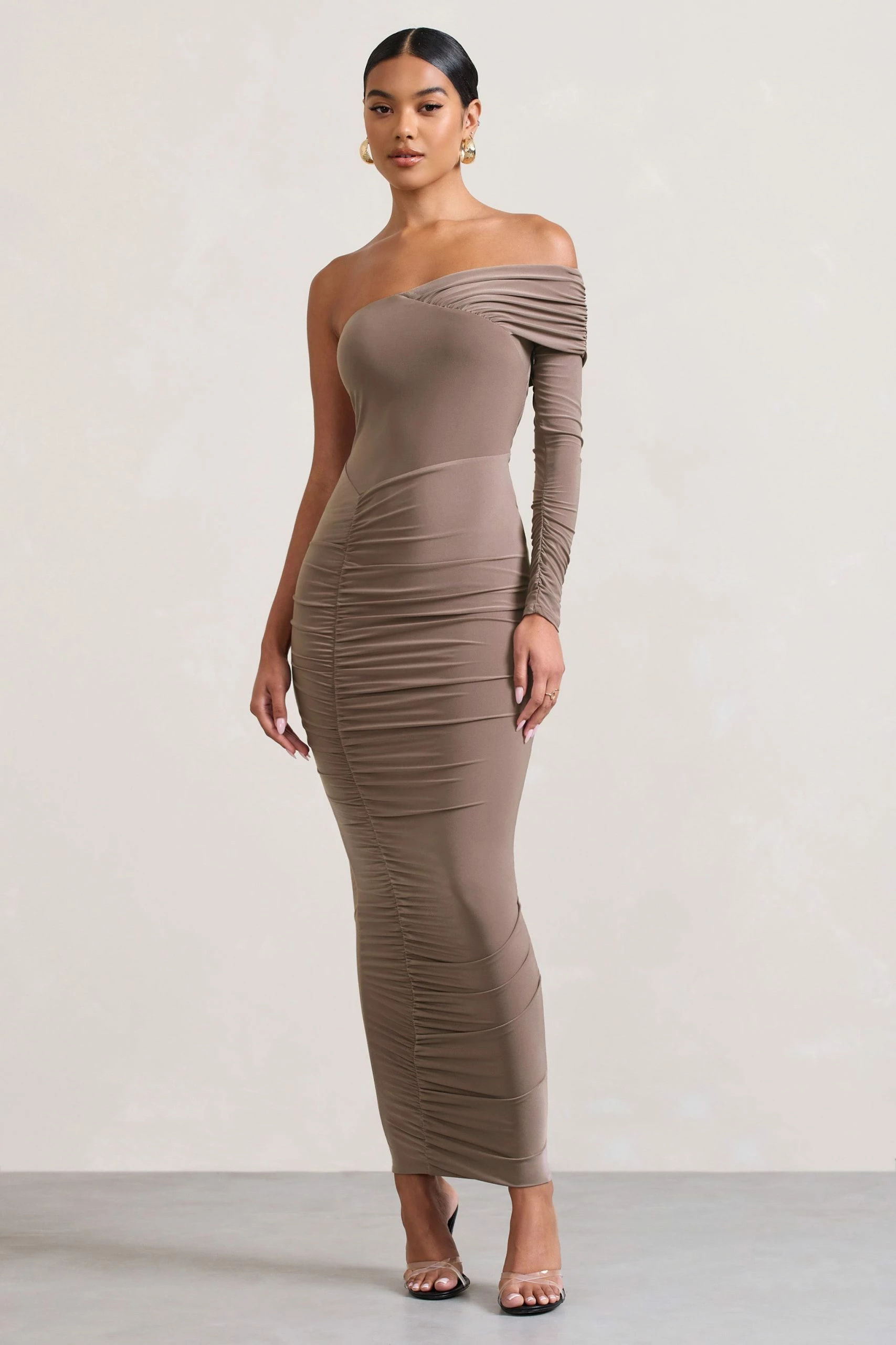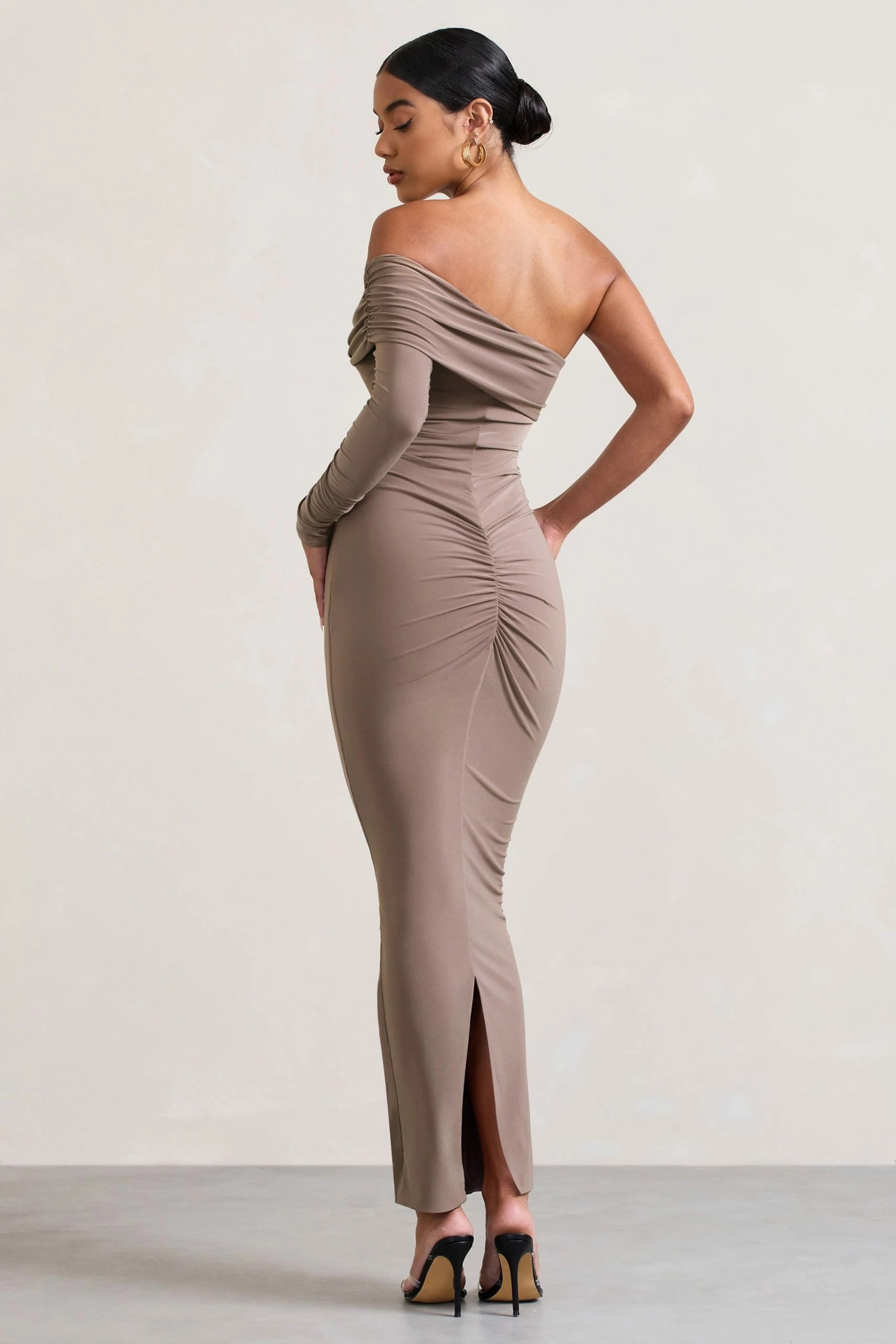 Crafted in a premium acetate fabric, our latest asymmetric maxi Afterparty is detailed by its flattering stretch ability and ruching effect. This figure-skimming dress is finished with a bardot neckline that sits elegantly off the shoulder to display your décolletage. Pair with a sleek bun for the perfect dinner date look.