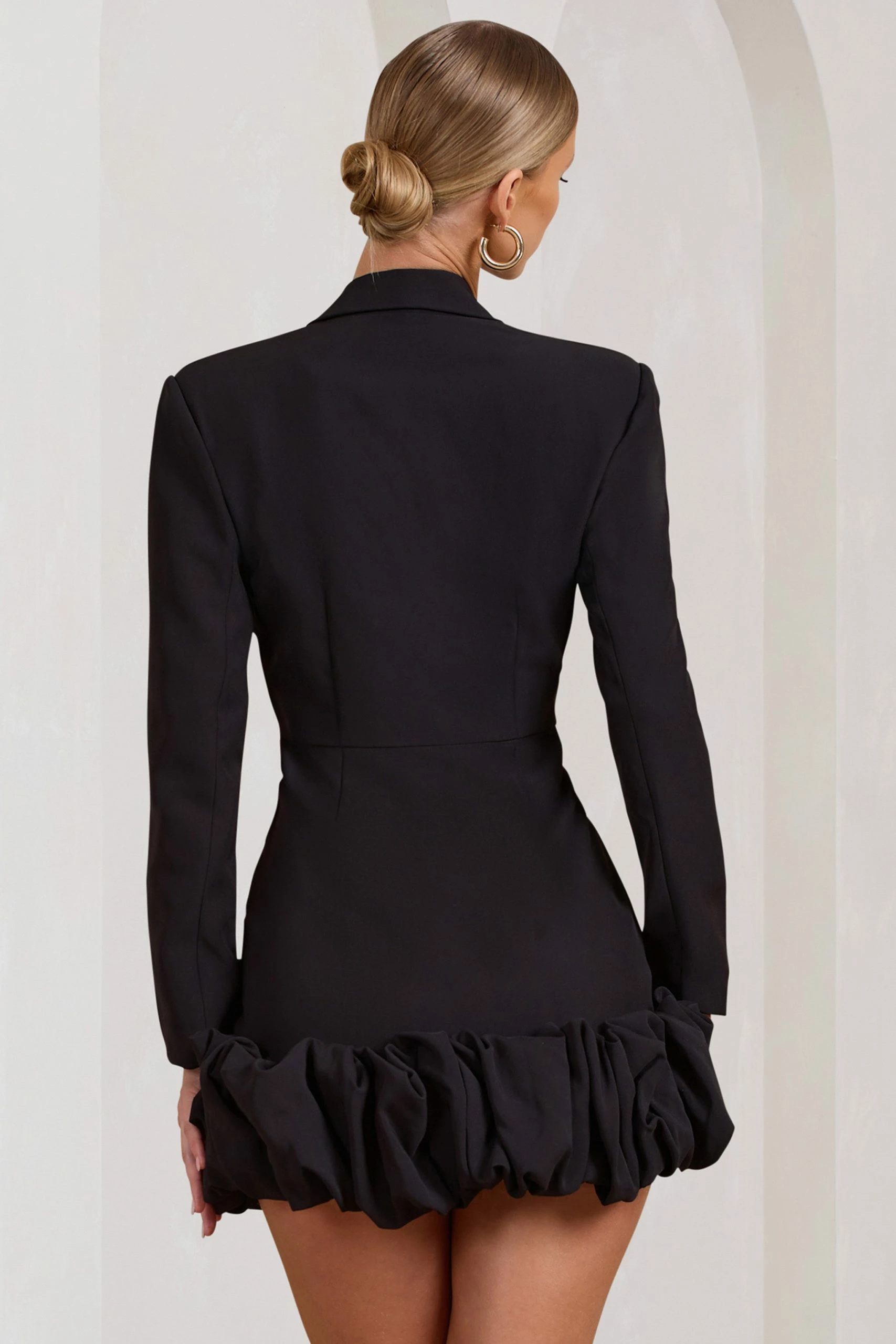 Let’s Escape | Black Cowl-Neck Cut-Out Long-Sleeved Mini Dress