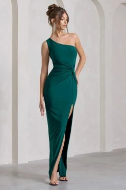 Our latest asymmetric maxi Coralina is an enchanting style designed for romantic evenings. A strappy open back defines this bottle green maxi, before finishing with an eye-catching twist detail and high-leg split. For an unforgettable wedding guest attire, try styling Coralina with gold accents to compliment its rich tone.