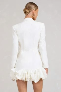 Coated in a shimmering crystal fabric, this statement silver maxi dress was designed to stand out. With a supportive boned bodice and elegant wrap skirt, Crystal is defined by artful array of feathers lining its trims. For the perfect black tie gala ensemble, try complimenting this striking maxi with some statement earrings and strappy stilettos.