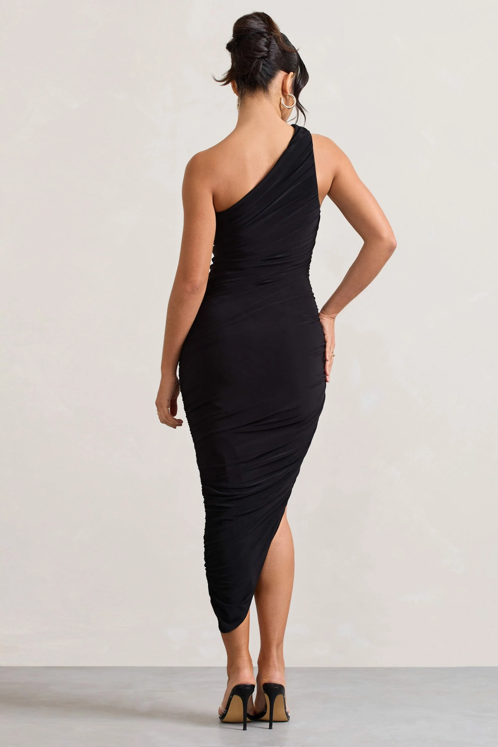 Be the first to review “Dorit | Black One Shoulder Asymmetric Ruched Midi Dress” Cancel reply