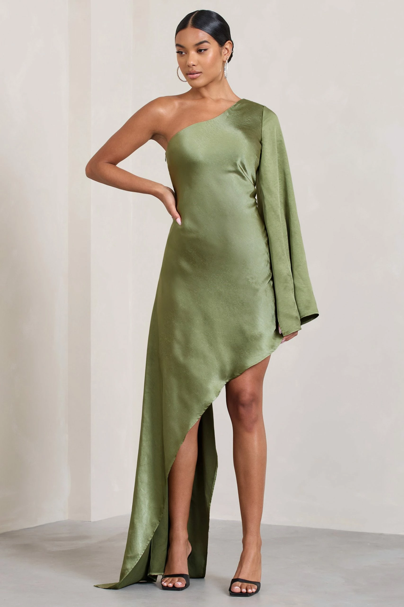 What’s more luxurious or made to flatter than a slinky satin midi dress like Hanna? Turning heads through its asymmetric silhouette featuring one long sleeve that sweeps past your waistline, this olive green maxi dress would be a gorgeous option for wedding guests or for those celebrating a graduation this summer.