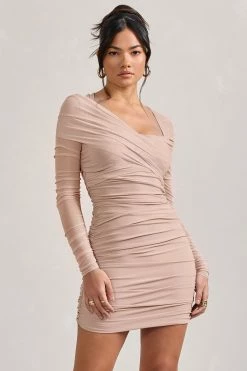 Bring some high drama into your new season wardrobe with our dusty rose “Hot Off The Press” blouson sleeve mini. The long statement sleeves are complimented by a low plunging neckline that accentuates your décolletage and a sexy thigh-skimming hem that shows off your pins to perfection. Cut in a premium jersey fabric and with full-body ruching, this sexy mini is the party dress you need to make a statement.