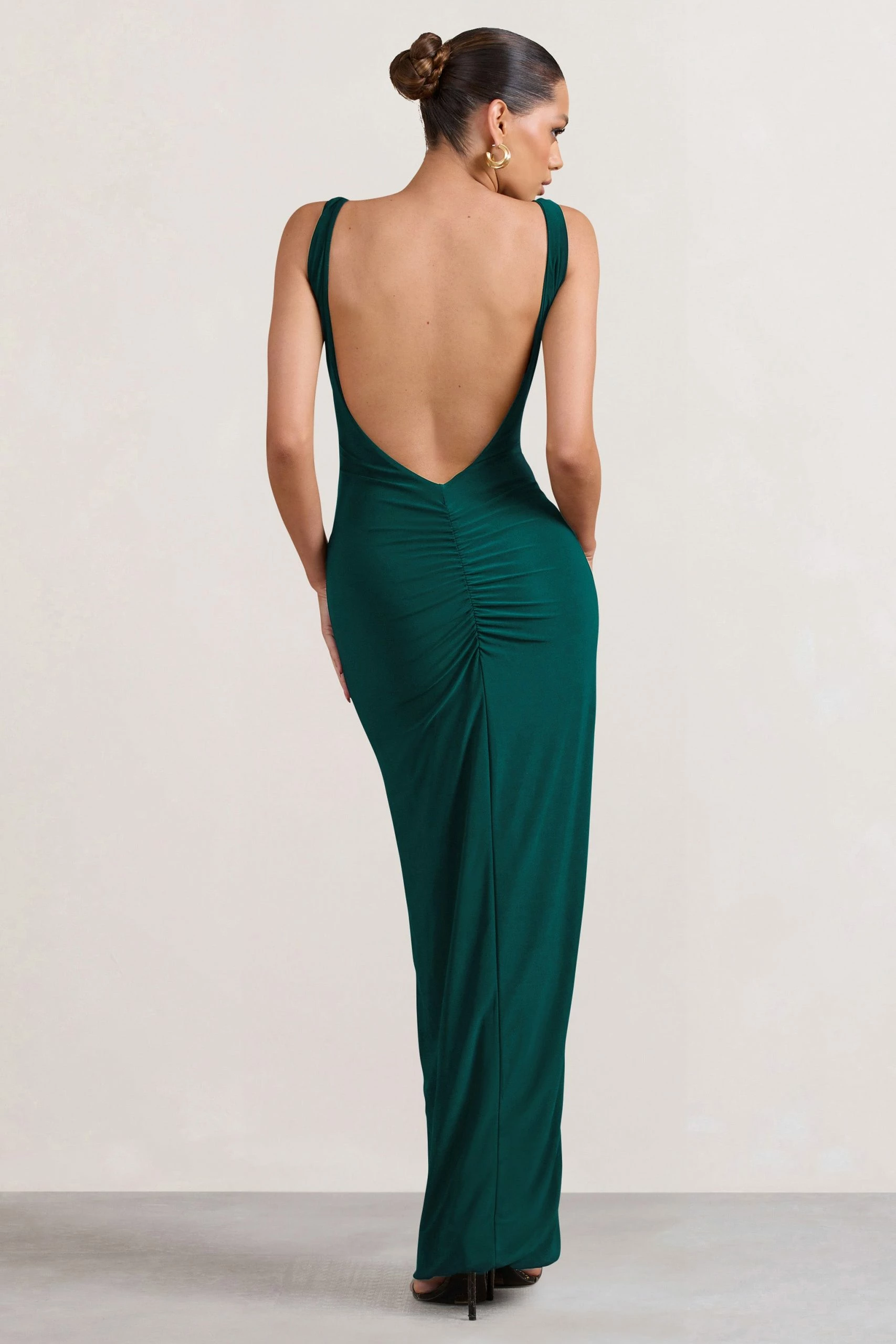 Exude elegance in our showstopping maxi dress Kate. A must-have dress for all your upcoming events, Kate features a chic square neckline with cami straps to enhance your sophisticated decolletage and a gorgeous plunge back. Show off your pins with the show-stopping thigh split and wow everyone in the room. Turn heads at your next event in this classic green dress.