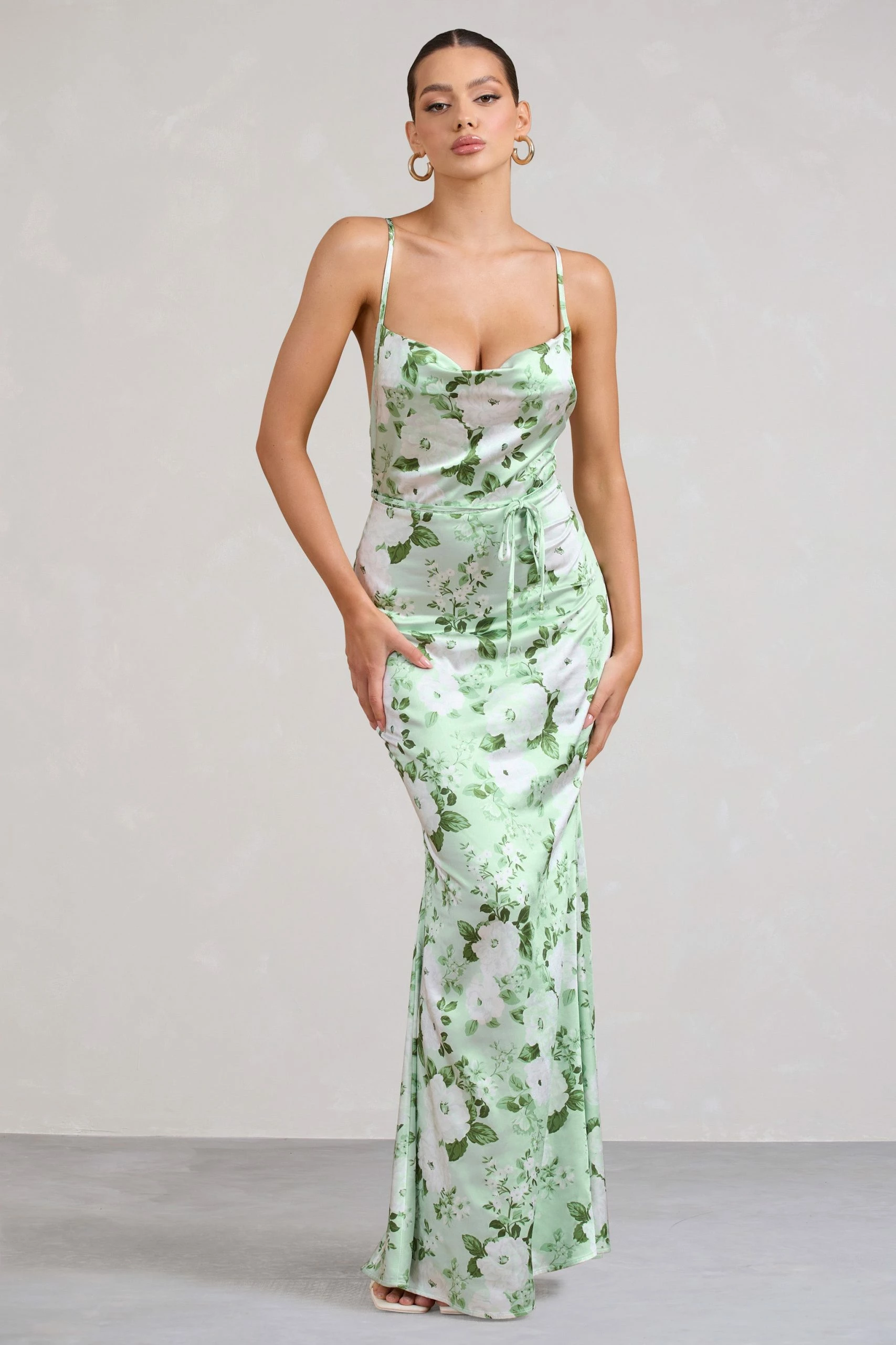 Be the first to review “Lifetime | Green Floral Print Satin Cowl Neck Maxi Dress With Cross Back Detail” Cancel reply