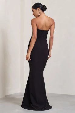 Patricia | Black Extreme Plunge Long Sleeve Maxi Dress With Tie Detail
