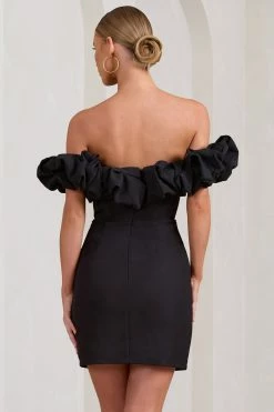 Cecelia | Black Ruched One-Sleeve Twist Mini Dress With Drape