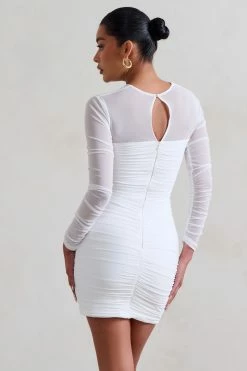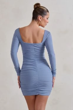 Muse | Cornflower Blue Long Sleeve Square Neck Ruched Mini Dress