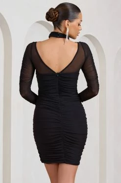 Corelle | Black Long Sleeve Sweet Heart Twist Detail Mini Dress