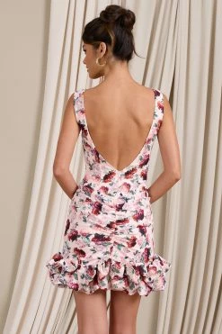 Celine | Mocha Asymmetric One Shoulder Ruched Maxi Dress With Curved Cut Out