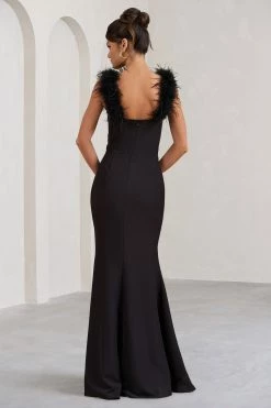 Cherish Me | Gold Satin Asymmetric Cowl Maxi Dress With Feather Strap