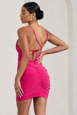 Dominique | Hot Pink One Shoulder Cape Sleeve Bodycon Maxi Dress