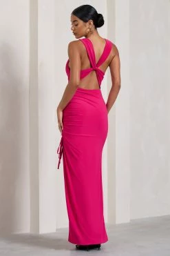 Disconnect | Black Bodycon Twist Neck Midi Dress With Strappy Back