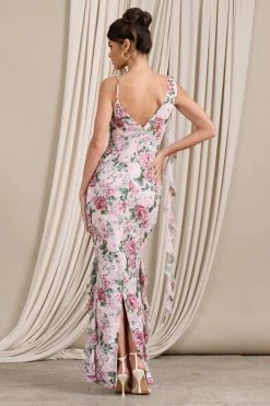 Lady Rosselini | Black Strappy Asymmetric Ruffled Maxi Dress