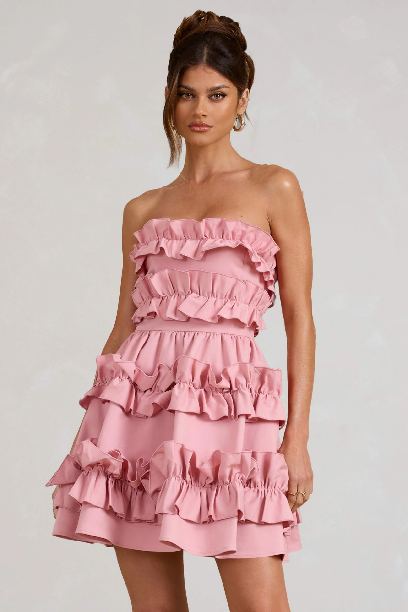 Hailey | Black Faux Leather Strapless Sweetheart Corset Midi Dress