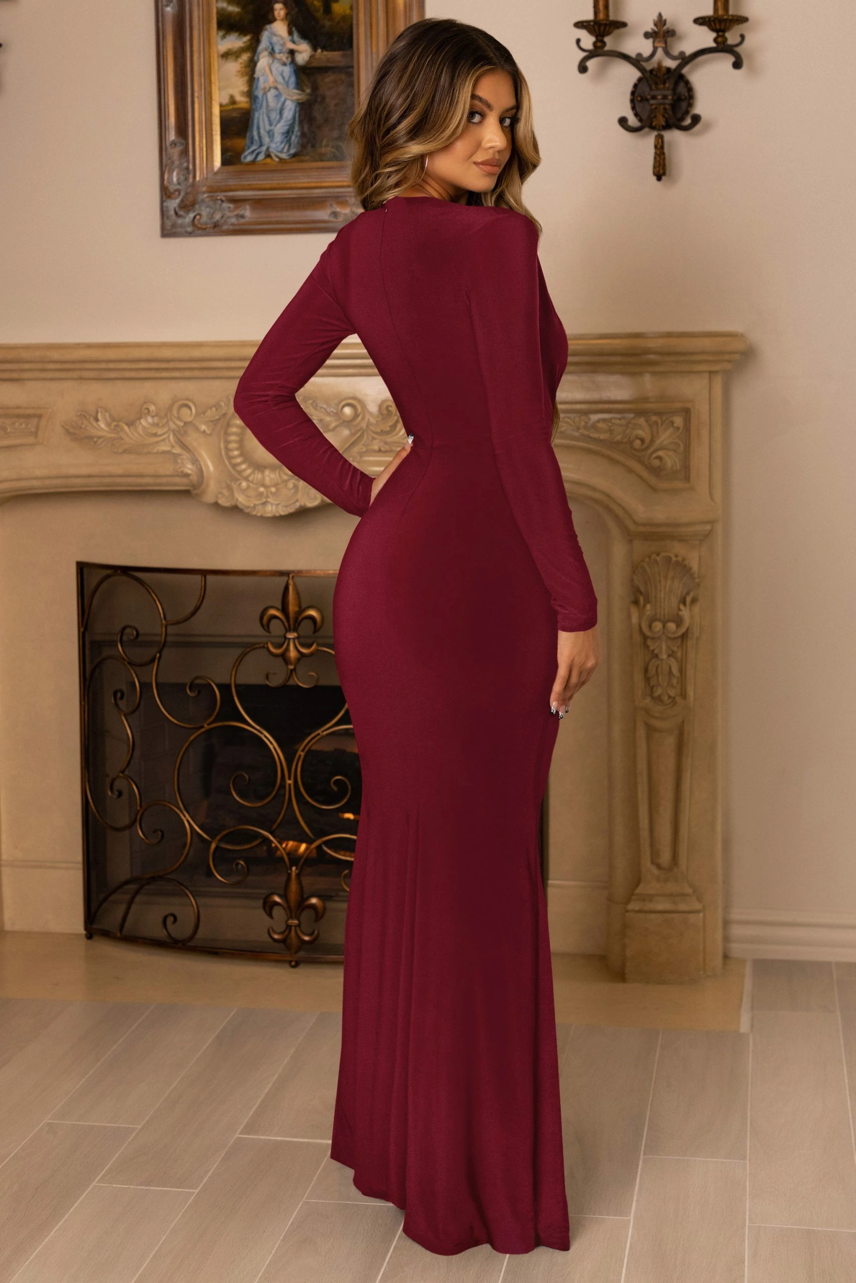 Prepare to grab the limelight in our “Unforgotten” berry maxi dress. This sophisticated evening gown is fully ruched and cut in a gorgeous jersey fabric to contour and sculpt your silhouette. With a wrap front v neckline that flatters your bust, floor-sweeping hemline, and thigh-split which flirts just the right amount of skin. Leave them wanting more in this stunning maxi.